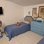 Det finns ett komplett kök, samt matplats. I köket finns även te-/kaffebryggare, kylskåp och köksredskap. Restaurangen Ristorante Simius Playa, som serverar ett brett utbud av måltider, ligger cirka 5 minuters promenad bort.